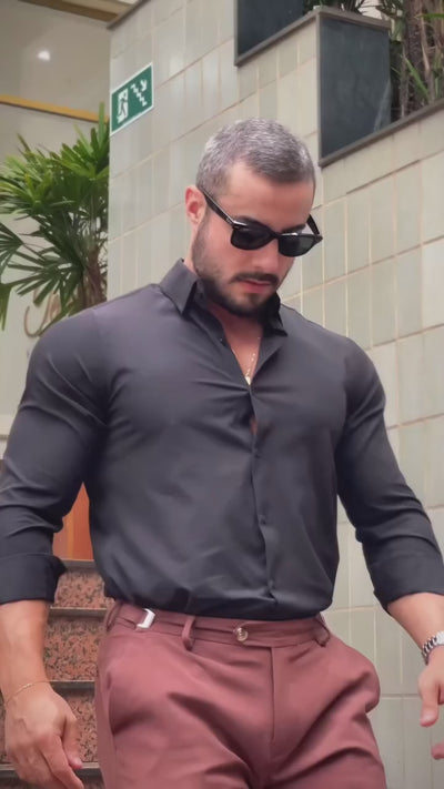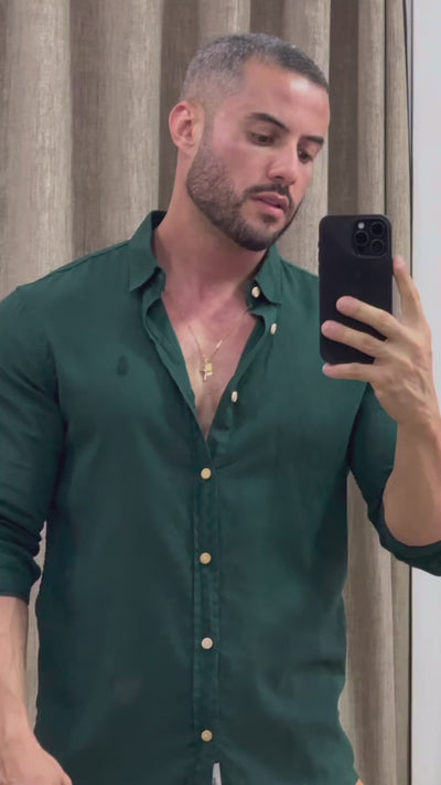 Camisa Resort Slim Fit Gola Italiana Elastano Manga Longa - Up